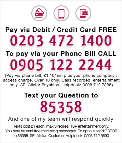 All Services: Over 18. Calls recorded. Entertainment only. Free marketing messages may be sent. To opt out send CSTOP to 85358. SP: Allstar Psychics. Helpdesk: info@allstarpsychics.co.uk